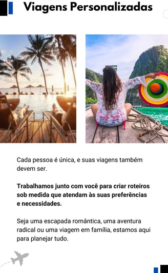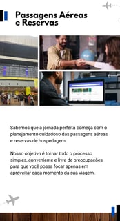 Somos uma agência de viagens especializada em passagens aéreas e pacotes de viagens, proporcionando segurança, tranquilidade e experiências incríveis para nossos clientes. Garantimos uma jornada inesquecível.